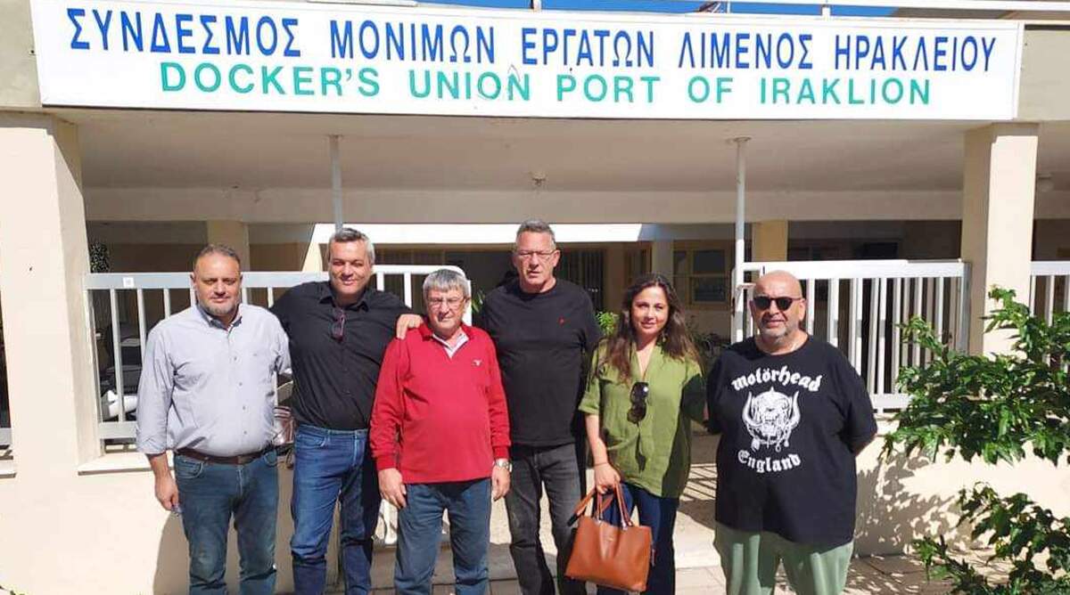 Συνάντηση με τον Σύνδεσμο Μονίμων Εργατών Λιμένος Ηρακλείου πραγματοποίησε το πρωί της Τρίτης 28/5 ο Τομεάρχης Υποδομών & Μεταφορών Κ.Ο. ΣΥΡΙΖΑ Προοδευτική Συμμαχία, Βουλευτής Ηρακλείου Χάρης Μαμουλάκης, μαζί με τους υποψήφιους Ευρωβουλευτές του ΣΥΡΙΖΑ ΠΣ Κώστα Αρβανίτη και Αναστασία Σαπουνά, καθώς και τον Γραμματέα της Ν.Ε. ΣΥΡΙΖΑ ΠΣ Ηρακλείου Δημήτρη Κλαράκη.