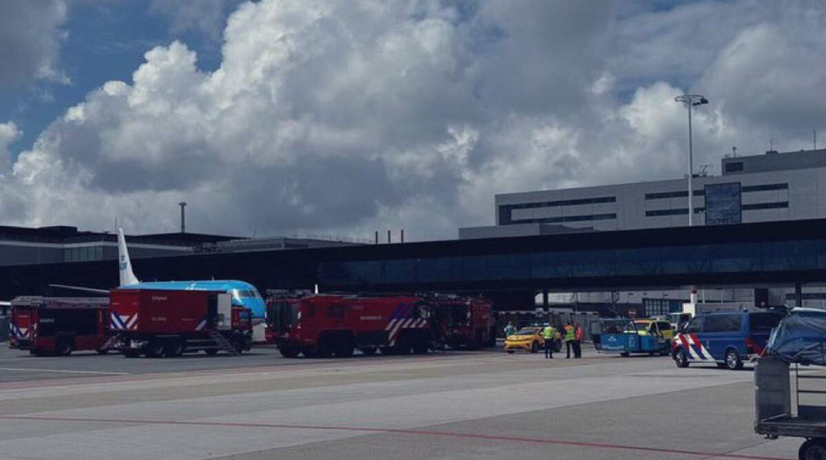 Φωτογραφία που εξασφάλισε η ολλανδική ραδιοτηλεόραση NOS δείχνει το αεροσκάφος περικυκλωμένο από πυροσβεστικά οχήματα και ασθενοφόρα, κοντά στον τερματικό σταθμό αναχωρήσεων.