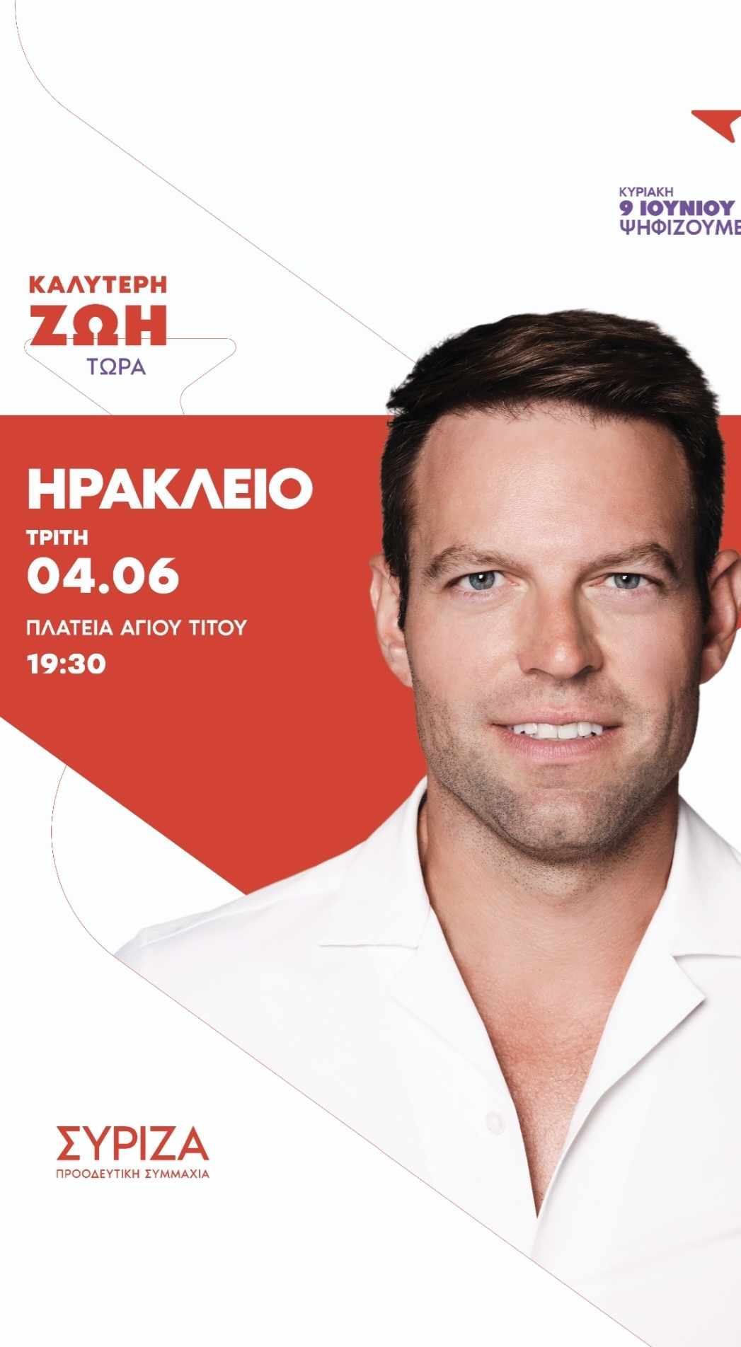 Λίγες ημέρες πριν τις εκλογές ο πρόεδρος του ΣΥΡΙΖΑ-ΠΣ, Στέφανος Κασσελάκης θα βρίσκεται και πάλι στο Ηράκλειο προκειμένου να απευθυνθεί στην τοπική κοινωνία.