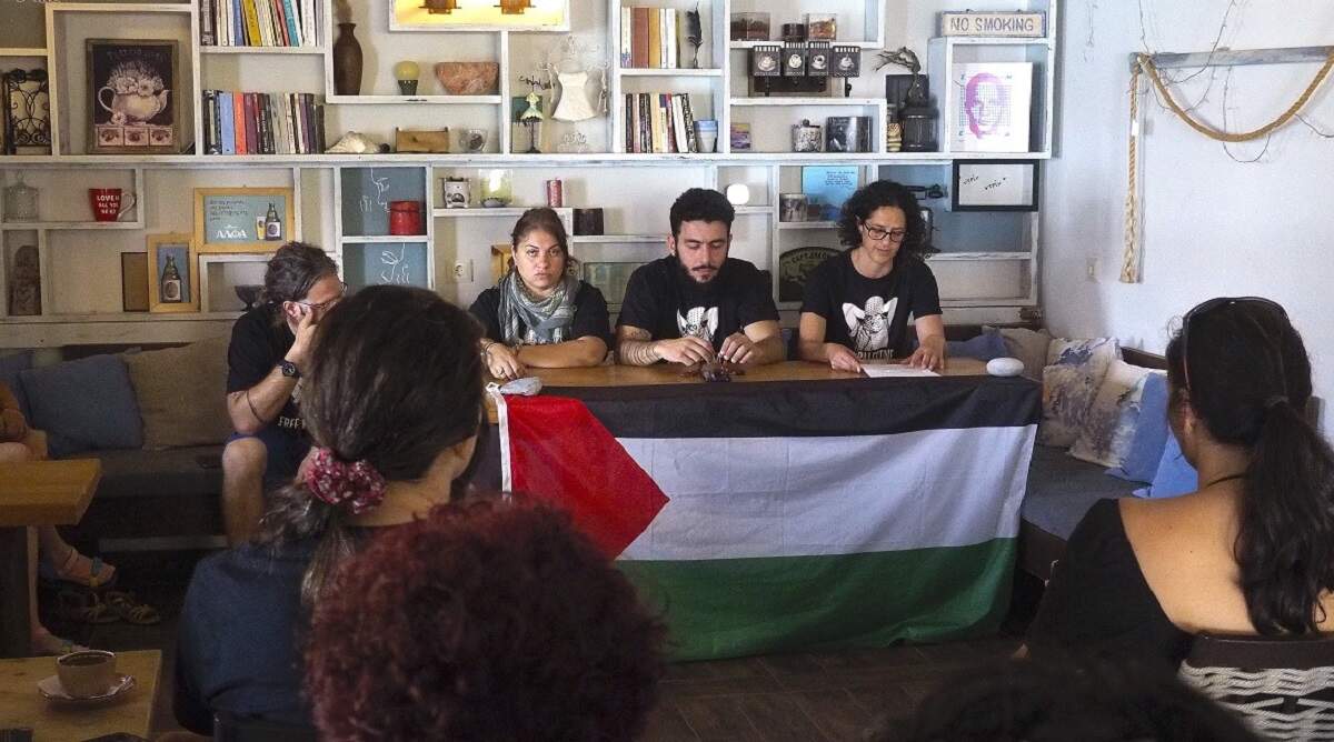 Μιλώντας εκ μέρους των διοργανωτών ο Αργύρης Μελέτης ανέφερε ότι « παρότι με ψήφισμα το 2015 το κράτος της Παλαιστίνης έχει αναγνωριστεί από το ελληνικό κοινοβούλιο, η κυβέρνηση παρέχει στήριξη στο Ισραήλ, σε ένα κράτος που διαπράτει εγκήματα πολέμου» εις βάρος ενός λαού που αγωνίζεται για γη και ελευθερία.