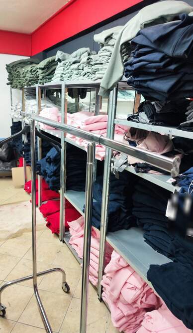 Στη συνέχεια ακολούθησε έλεγχος σε κατάστημα λιανικής πώλησης ιδιοκτησίας του όπου βρέθηκαν και κατασχέθηκαν 382 τεμάχια ειδών ρουχισμού τα οποία έχουν παραχθεί στον προαναφερθέντα χώρο και έφεραν πλαστά σήματα επώνυμων εταιρειών.