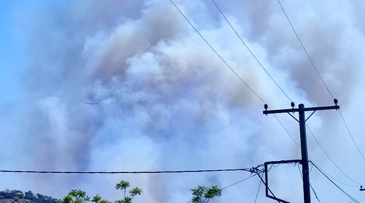 Κλήθηκαν εναέρια μέσα για την κατάσβεση της φωτιάς καθώς και η συνδρομή του Δήμου με υδροφόρες.
