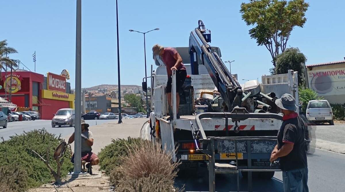 Με γρήγορους ρυθμούς προχωρούν οι εργασίες αντικατάστασης των παλαιών οξειδωμένων ιστών οδοφωτισμού στην Λ. Στ. Καζαντζίδη, από τη συμβολή της με την Λ. Ικάρου μέχρι την ράμπα εξόδου προς Ρέθυμνο – Χανιά και η αντικατάστασή τους με νέα φωτιστικά σώματα οικονομίας, τύπου LED.