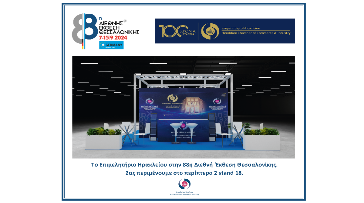 10.00–13.30: Κεντρική εκδήλωση εορτασμού 100 χρόνων Επιμελητηρίου Ηρακλείου (Αίθουσα Καστελλάκη Επιμελητηρίου Ηρακλείου).