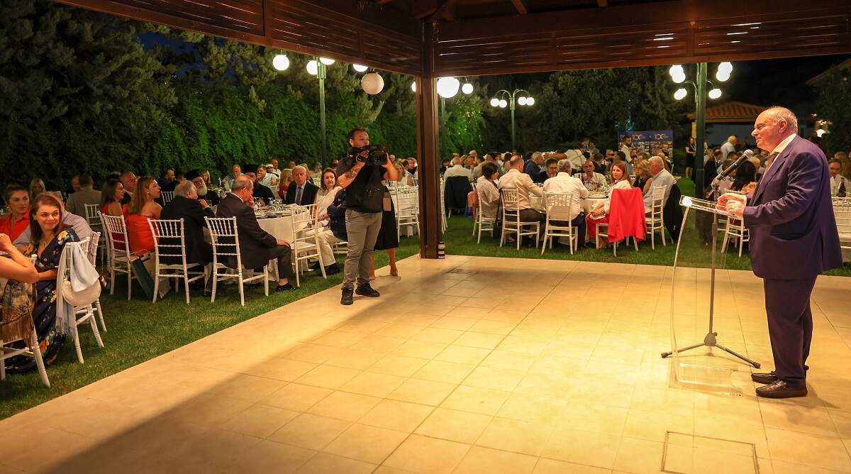 Στο Επίσημο Δείπνο, τίμησαν με την παρουσία τους το Επιμελητήριο Ηρακλείου, ο Θεοφιλέστατος Επίσκοπος Κνωσού κ. Μεθόδιος, η Υφυπουργός Ανάπτυξης κα Ζωή Ράπτη, ο Γενικός Γραμματέας Τουριστικής Πολιτικής & Ανάπτυξης κ. Μύρων Φλουρής, o τ. Υπουργός κ. Λευτέρης Αυγενάκης, ο βουλευτής ΝΔ κ. Κωνσταντίνος Κεφαλλογιάννης, εκπρόσωποι της τοπικής αυτοδιοίκησης, των παραγωγικών φορέων και επιχειρηματίες.