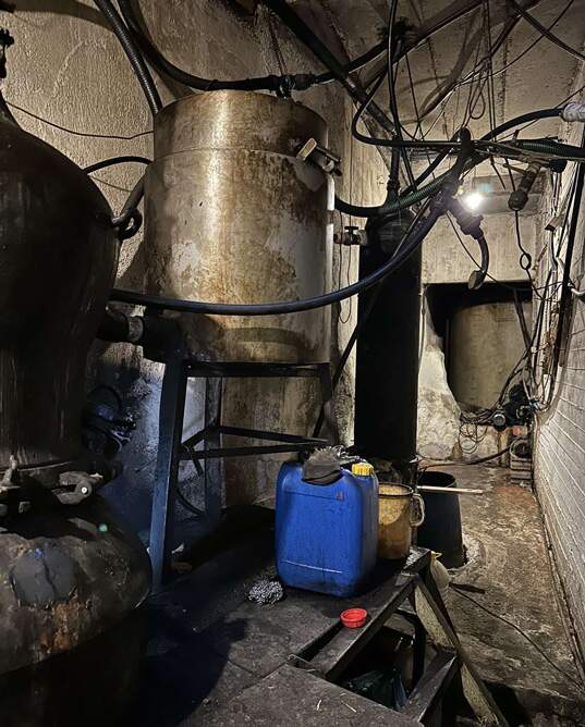 Ειδικότερα, κατά την επιχείρηση εντοπίστηκε σε ειδικά διαμορφωμένους χώρους αποθηκών εγκαταστημένος εξοπλισμός συστήματος απόσταξης αλκοολούχων ποτών. Επιπλέον, κατά την έρευνα βρέθηκαν και κατασχέθηκαν συνολικά: