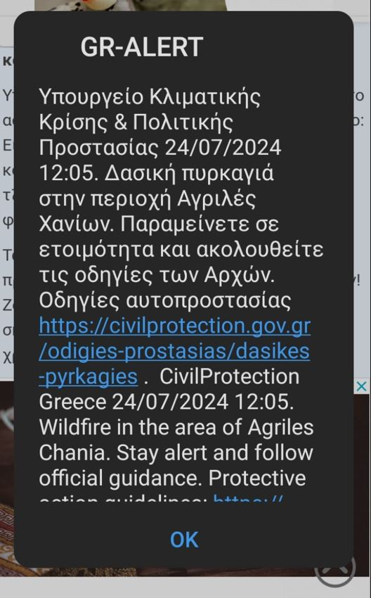 Εντωμεταξύ ήχησε στα κινητά της ευρύτερης περιοχής μήνυμα από το 112 το οποίο συμβουλεύει να μείνουν οι πολίτες σε ετοιμότητα και να ακολουθούν τις οδηγίες των Αρχών.