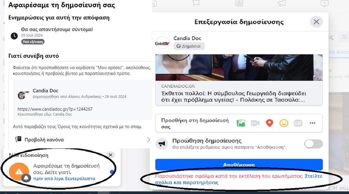 Facebook: Και πάλι συνεχής λογοκρισία στις αναρτήσεις του Candiadoc!
