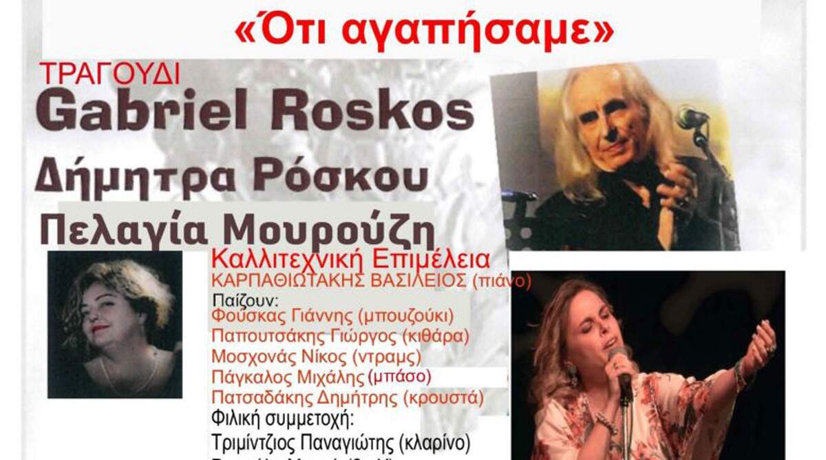 Με την στήριξη της Περιφέρειας Κρήτης θα πραγματοποιηθεί συναυλία με τίτλο «ΟΤΙ ΑΓΑΠΗΣΑΜΕ» τη Δευτέρα 5 Αυγούστου στις 9:30 μ.μ. στο μικρό κηποθέατρο «ΜΑΝΟΣ ΧΑΤΖΙΔΑΚΗΣ» με στήριξη του δήμου Ηρακλείου.
