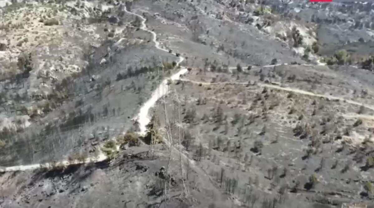 Τα πλάνα από το drone της ΕΡΤ πάνω από την καμένη Πεντέλη είναι σοκαριστικά. Όπου φτάνει το μάτι μόνο καμένα δέντρα, στάχτη και απόγνωση.