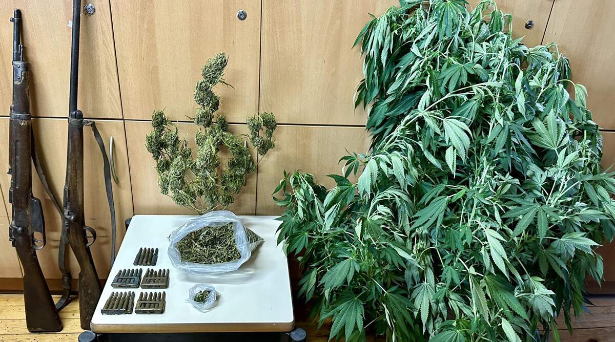 Κατά τη διάρκεια των ερευνών βρέθηκαν και κατασχέθηκαν δύο πολεμικά όπλα, 29 φυσίγγια, δύο δενδρύλλια, δύο γραμμάρια ακατέργαστης και 167 γραμμάρια φυτικών αποσπασμάτων κάνναβης.