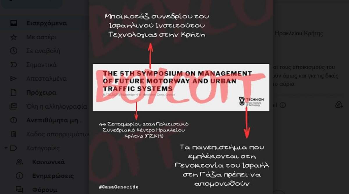 Κάλεσμα σε μποϊκοτάζ του 5ου Συμποσίου για τη Διαχείριση Μελλοντικών Συστημάτων Αυτοκινητοδρόμων και Αστικής Κυκλοφορίας