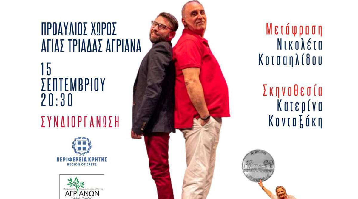 15 Σεπτεμβρίου στις 20:30 στον προαύλιο χώρο Αγίας Τριάδας, στα Αγριανά