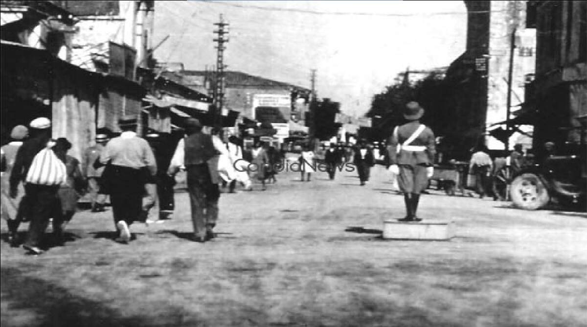 Ο δρόμος αριστερά που ανηφορίζει είναι η σημερινή Λ.Δημοκρατίας ενώ στο βάθος δεσπόζει ο Γιούχτας.