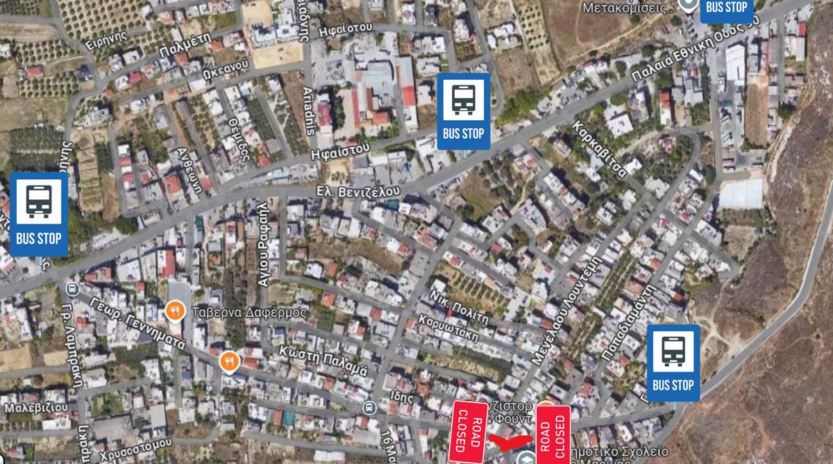 Δ.) Επίσης το λεωφορείο θα κάνει στάση στη συμβολή των οδών Γεννηματά και Στεφανογιάννη από την ανατολική πλευρά του οικισμού.