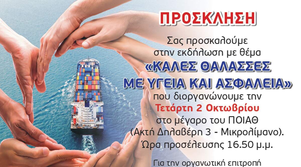 Η ετήσια διοργάνωση «Καλές θάλασσες με υγεία και ασφάλεια» θα πραγματοποιηθεί και φέτος στο Μικρολίμανο (Μέγαρο ΠΟΙΑΘ) την Τετάρτη 2 Οκτωβρίου στις 5 το απόγευμα.