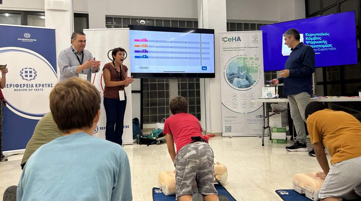 Βασικός στόχος του προγράμματος αποτελεί η εκπαίδευση των πολιτών στην παροχή πρώτων βοηθειών αλλά και η χρήση αυτόματου εξωτερικού απινιδωτή. Οι επισκέπτες είχαν την ευκαιρία μέσα από ένα εκπαιδευτικό παιχνίδι και με τις οδηγίες της καθηγήτριας αναισθησιολογίας και επικεφαλής στο Εργαστήριο Καρδιοπνευμονικής Αναζωογόνησης του Πανεπιστημίου Κρήτης, Αλεξάνδρας Παπαϊωάννου, να εφαρμόσουν σε ειδικά προπλάσματα τεχνικές Καρδιοπνευμονικής Αναζωογόνησης.
