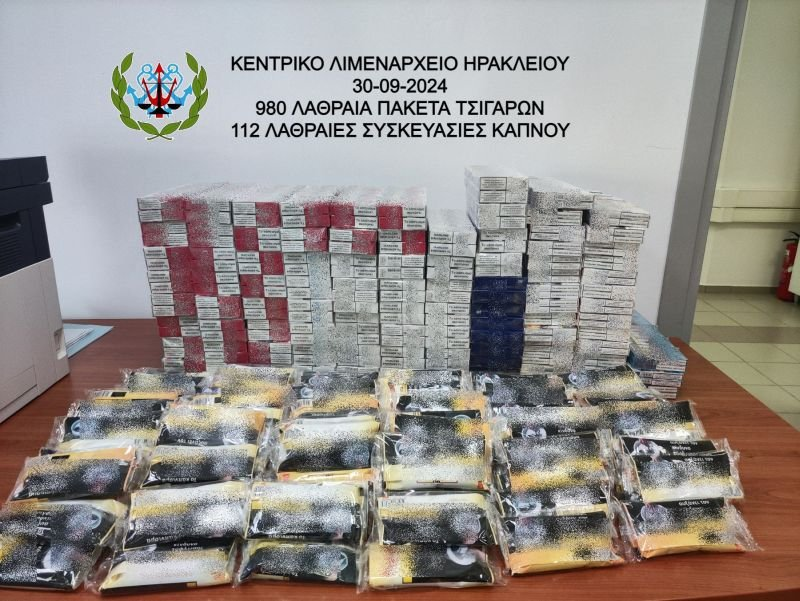 Τις πρωινές ώρες σήμερα, στελέχη της Περιφερειακής Ομάδας Δίωξης Ναρκωτικών (Π.Ο.ΔΙ.Ν.) του Κεντρικού Λιμεναρχείου Ηρακλείου προέβησαν στη σύλληψη ενός 49χρονου αλλοδαπού (υπήκοος Πακιστάν) για παράβαση του Ν. 2960/01 περί «Εθνικού Τελωνειακού Κώδικα». Συγκεκριμένα, κατόπιν αξιοποίησης πληροφοριών, διενεργήθηκε νόμιμη έρευνα στην οικία του 49χρονου, αλλά και σε παρακείμενη εγκαταλελειμμένη οικία, όπου βρέθηκαν εννιακόσια ογδόντα πακέτα τσιγάρων και εκατόν δώδεκα συσκευασίες καπνού, διαφόρων επωνυμιών, στερούμενα στο σύνολό τους τελωνειακού ελέγχου και σήμανσης.