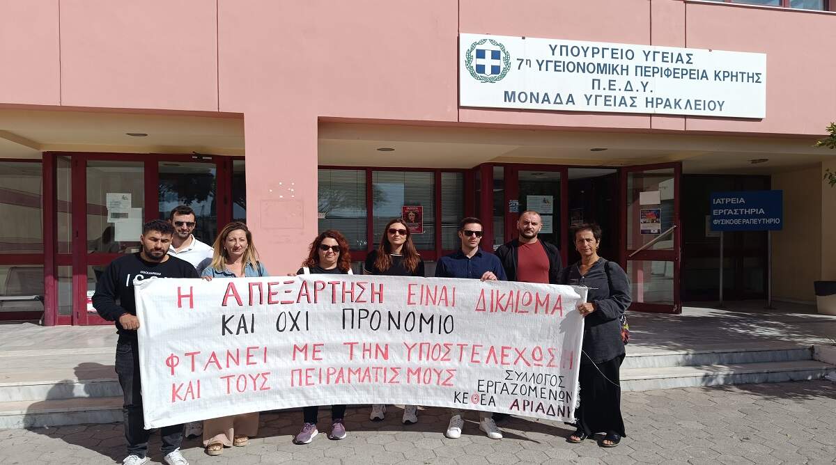 Στάση εργασίας και παράσταση διαμαρτυρίας στην 7η ΥΠΕ από τους εργαζόμενους του ΚΕΘΕΑ Αριάδνη στο Ηράκλειο