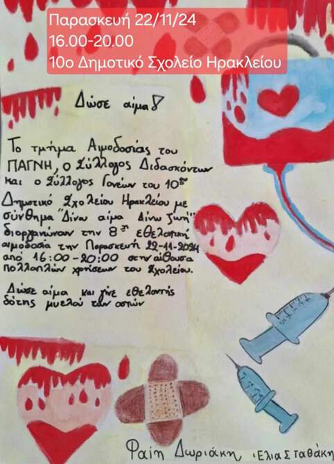 Εθελοντική αιμοδοσία στο 10ο Δημοτικό Σχολείο Ηρακλείου