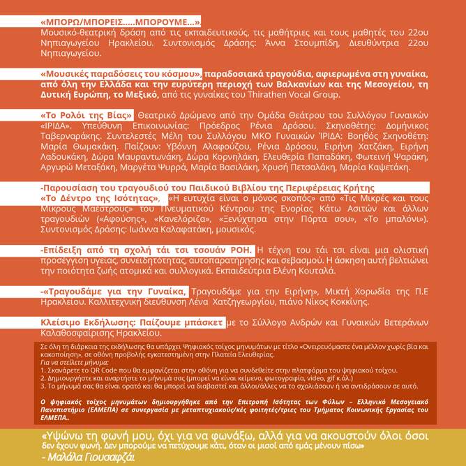 Το αναλυτικό πρόγραμμα των 16ήμερων Δράσεων