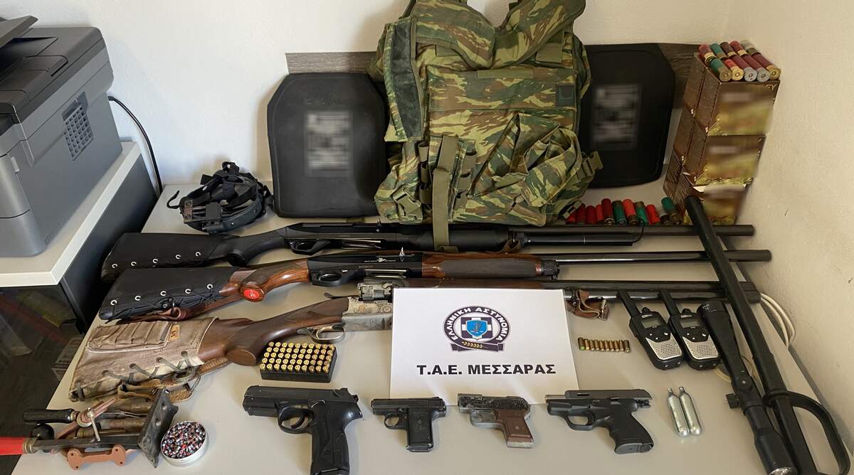 Κατασχεθήκαν μεταξύ άλλων -7- όπλα, -992- φυσίγγια, διόπτρα, αλεξίσφαιρο γιλέκο
