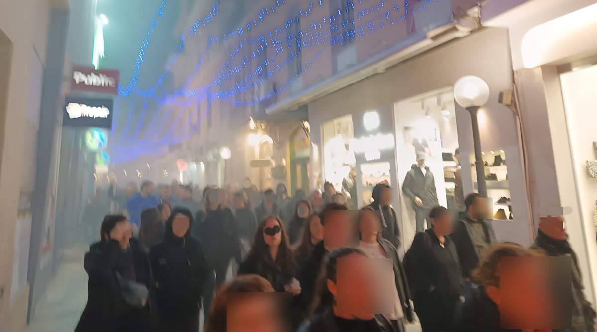Οι διαδηλωτές συγκεντρώθηκαν στις 7 στα Λιοντάρια, ενώ ακολούθησε δυναμική πορεία στους κεντρικούς δρόμους της πόλης.
