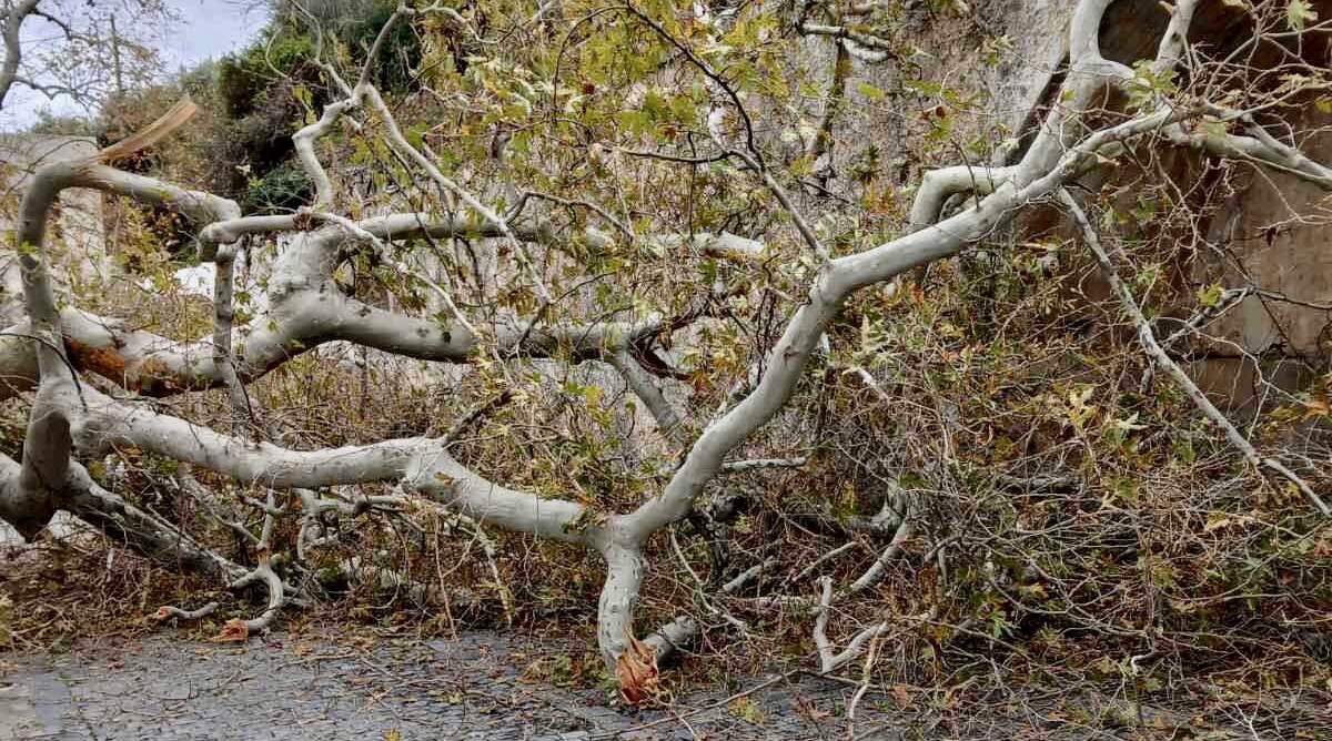 Μεγάλο τμήμα του ιστορικού πλάτανου στο Κράσι του Ηρακλείου, αποκολλήθηκε από τον κορμό και κατέληξε στον δρόμο, ο οποίος έκλεισε λόγω του όγκου του τμήματος που έπεσε.