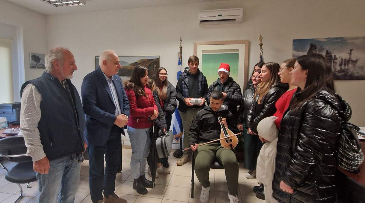 Μαθητές της Β Λυκείου Βιάννου, επισκέφθηκαν σήμερα το Δήμαρχο Βιάννου κ. Παύλο Μπαριτάκη, για να του ψάλλουν τα χριστουγεννιάτικα κάλαντα!