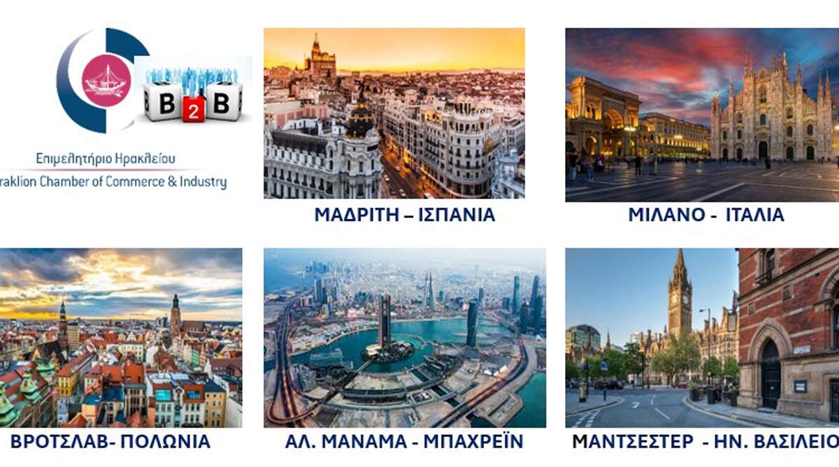 Σύμφωνα με το πρόγραμμα που έχει ήδη καταρτιστεί, με βάση τις ανάγκες των επιχειρήσεων και τις ευκαιρίες που παρουσιάζουν συγκεκριμένες αγορές, το Επιμελητήριο Ηρακλείου θα συμμετάσχει στις εξής επιχειρηματικές εκδηλώσεις:
