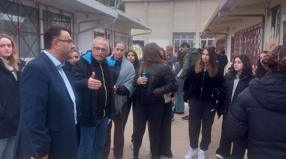 Ο Βουλευτής του ΚΚΕ δήλωσε την αμέριστη στήριξη του Κόμματος στον δίκαιο αγώνα μαθητών, εκπαιδευτικών και γονιών για την αναβάθμιση και την ολόπλευρη στήριξη της καλλιτεχνική εκπαίδευσης από το κράτος. Τόνισε ιδιαίτερα τα οργανωμένα και ώριμα χαρακτηριστικά του οργανωμένου αγώνα της μαθητικής κοινότητας, έχοντας την πλήρη στήριξη των γονιών και των καθηγητών των δύο σχολείων. Ανάμεσα σε άλλα, δήλωσε: «Όταν μιλάμε για Καλλιτεχνικό και Μουσικό Σχολείο σημαίνει ότι πρέπει να είναι σύγχρονα, λειτουργικά και ασφαλή με όλες τις απαραίτητες υποδομές για όλα τα μαθήματα. Πρέπει να πληρούν κάποιες συγκριμένες προϋποθέσεις. Ειδικά τα συγκριμένα κτίρια δεν έχουν τις προϋποθέσεις ούτε για σχολικά κτίρια γενικής παιδείας. Παρά το γεγονός ότι οι γονείς σας βάζουν βαθιά το χέρι στην τσέπη πληρώνοντας φόρους και χαράτσια, τα οποία έπρεπε να επιστρέφουν για την ενίσχυση της δημόσιας δωρεάν Υγείας, Παιδείας και Πρόνοιας. Δυστυχώς, όμως, αυτός ο πλούτος στρέφεται αλλού, όπως στις πολεμικές δαπάνες, στην ενίσχυση του τραπεζικού συστήματος και της πράσινης ανάπτυξης. Άρα λοιπόν ενώ υπάρχει πλούτος που βγάζει με τον ιδρώτα του ο ελληνικός λαός αυτός διοχετεύεται σε συγκεκριμένες τσέπες. Για το συγκριμένο κράτος που προτεραιότητά του έχει την πολιτική «κόστους-οφέλους», η χρηματοδότηση της δωρεάν και δημόσιας παιδείας κοστίζει και δεν επιλέγεται. Αυτό χρησιμοποιείται και ως μοχλός πίεσης για να υπάρξει σύμπραξη δημόσιου και ιδιωτικού τομέα σε όλους τους τομείς το επόμενο διάστημα, με σκοπό από την μία ο λαός να βάζει βαθιά το χέρι στην τσέπη πληρώνοντας διπλά και τριπλά για να έχει παιδεία και υγεία και από την άλλη οι επιχειρηματικοί όμιλοι να βγάζουν εκατομμύρια στις πλάτες μας. Δεν υπάρχει πιο τρανταχτό παράδειγμα από την παράδοση της έκτασης της πρώην αμερικάνικης Βάσης Γουρνών, στην οποία στεγάζονται σχολικές μονάδες, στο μεγάλο κεφάλαιο, για τη δημιουργία Καζίνο και άλλων χλιδάτων επενδύσεων, ενώ θα μπορούσαν να γίνουν σχολεία, νοσοκομεία και ελεύθεροι χώροι ψυχαγωγίας για όλο τον λαό της περιοχής».