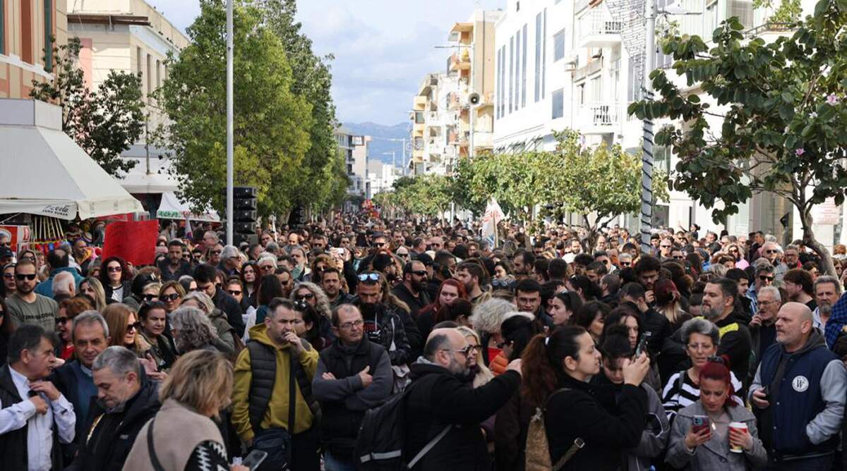 Χιλιάδες πολίτες του Ηρακλείου έδωσαν σήμερα το «παρών» στην πανελλαδική κινητοποίηση για το έγκλημα των Τεμπών, μετά το κάλεσμα συγγενών των θυμάτων.