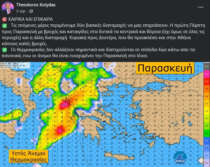 Φθινοπωρινός αναμένεται ο καιρός τα επόμενα 24ωρα, με τον Θοδωρή Κολυδά να κάνει λόγο σε «δύο βασικές διαταραχές».