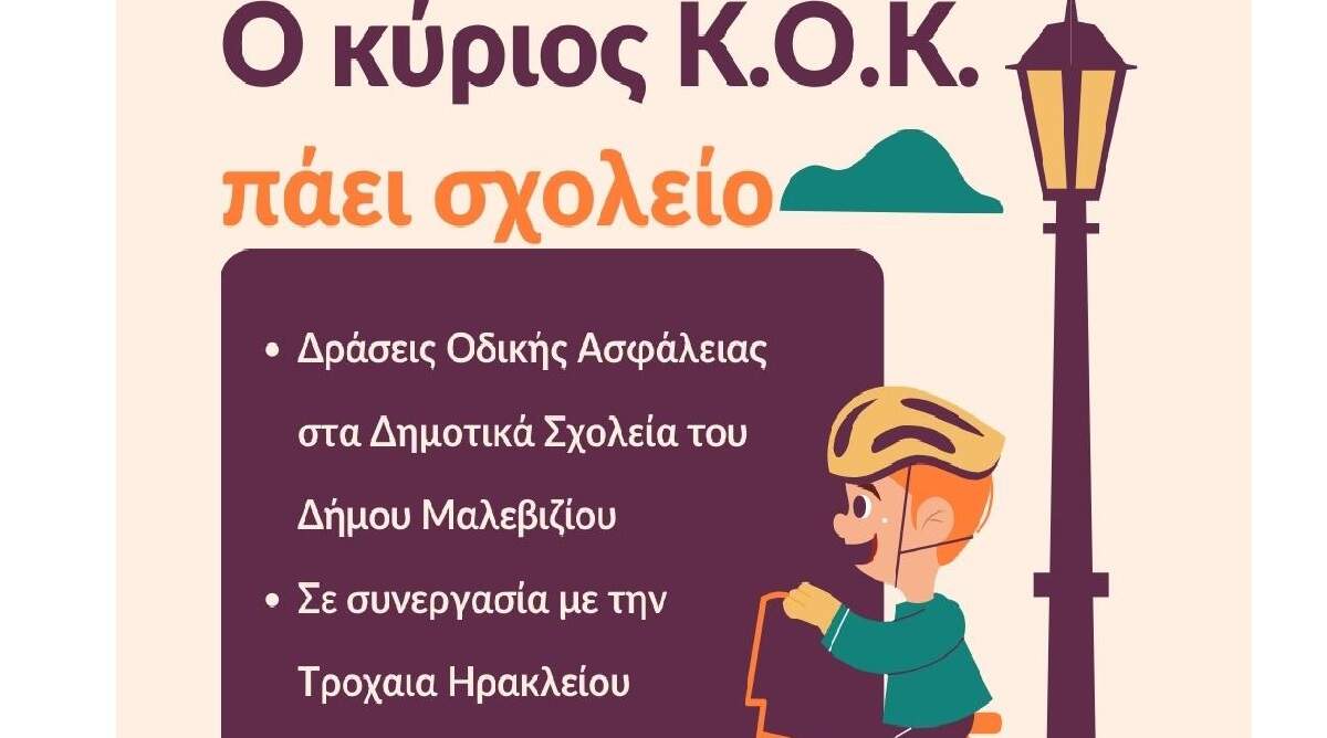 Η βιωματική δράση «Κυκλοφορώ στην πόλη παρέα με τον κύριο Κ.Ο.Κ.» που σχεδιάστηκε από τη Δημοτική Αστυνομία του Δήμου Ηρακλείου και αγκαλιάστηκε από μαθητές δημοτικών σχολείων και εκπαιδευτικούς, ξεκινάει για δεύτερη συνεχόμενη χρονιά με την συνεργασία της Διεύθυνσης Πρωτοβάθμιας Εκπαίδευσης Π.Ε Ηρακλείου.