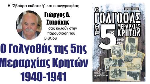 Αύριο Τετάρτη στο Πολύκεντρο Νεολαίας Ηρακλείου Μια ξεχωριστή βραδιά ιστορικής μνήμης με αφορμή την επέτειο της 28ης Οκτωβρίου 1940, στο Πολύκεντρο Νεολαίας Ηρακλείου όπου θα γίνει η παρουσίαση του βιβλίου «Ο Γολγοθάς της 5ης Μεραρχίας Κρητών 1940-1941» του Γιώργου Σταράκη, που κυκλοφορεί από τις εκδόσεις «Σβούρα Εκδοτική». Μιας έκδοσης που αναδεικνύει με συγκλονιστικό τρόπο μια από τις πιο ηρωικές και δραματικές…