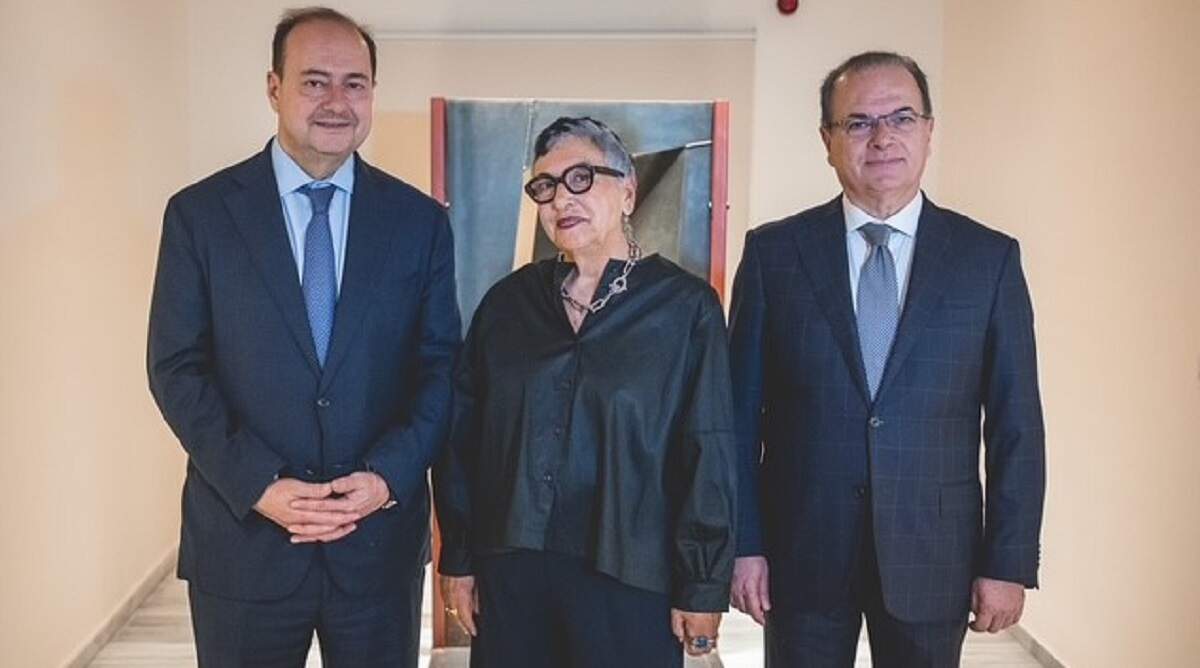 Από αριστερά, Δημήτρης Τσιτσιράγκος, Πρόεδρος ΔΣ Alpha Bank, Μαρία Μαραγκού, Καλλιτεχνική Διευθύντρια του Μουσείου Σύγχρονης Τέχνης Κρήτης, Γιώργος Μαρινάκης, Δήμαρχος Ρεθύμνης
