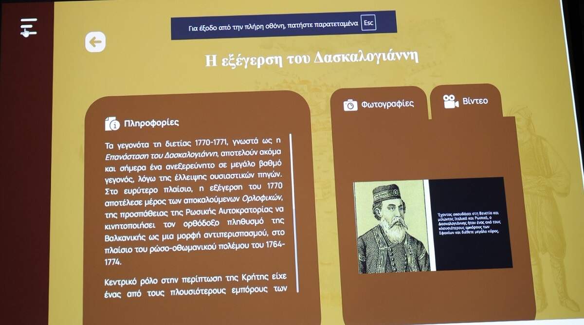 Η νέα ηλεκτρονική δικτυακή πύλη και οι ψηφιακές εφαρμογές που αναπτύχθηκαν στο πλαίσιο του έργου «Ψηφιακός Ιστορικός Πλοηγός της Νεότερης Ιστορίας της Κρήτης (1821–1913)», παρουσιάστηκε σήμερα στο πλαίσιο συνέντευξης τύπου στην Περιφέρεια Κρήτης. Το έργο υλοποιήθηκε μέσω του προγράμματος «ΑΝΤΩΝΗΣ ΤΡΙΤΣΗΣ» του Υπουργείου Εσωτερικών, με δικαιούχο την Περιφέρεια Κρήτης, σε επιστημονική επιμέλεια του Ιστορικού Μουσείου Κρήτης (ΕΚΙΜ/ΙΜΚ) και την ανάδοχο Ένωση Εταιρειών «NOVA ICT – ΑΙΓΑΙΟΥ SOLUTIONS».