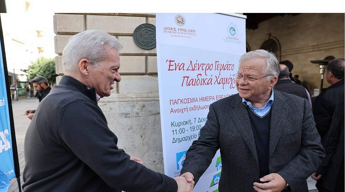 Ο Δήμαρχος Ηρακλείου Αλέξης Καλοκαιρινός παρακολούθησε τις δράσεις μαζί με τη σύζυγο του Άση Λυγερού και τον Πρόεδρο του «Χαμόγελου του Παιδιού» Κώστα Γιαννόπουλο, και μιλώντας για τον εθελοντισμό, έναν από τους σημαντικότερους πυλώνες της κοινωνικής πολιτικής του Δήμου, δήλωσε: «Είμαστε εδώ για την Παγκόσμια Ημέρα του Εθελοντισμού, αλλά ο εθελοντισμός είναι κάθε μέρα. Στον Δήμο Ηρακλείου θεωρούμε ότι πρέπει να ενθαρρύνουμε και να υποστηρίζουμε τις δράσεις του εθελοντισμού, αλλά όχι να τις κατευθύνουμε. Έτσι βλέπουμε αυτό τον στόχο με την πολύ δραστήρια και αποτελεσματική Αντιδήμαρχο Φιλαρέτη Δαφέρμου – Χρονάκη. Σε κάθε περίπτωση, πρέπει να είναι σαφές ότι δεν ζητείται από τον εθελοντισμό να αντικαταστήσει αυτό το οποίο αποτελεί καθήκον δικό μας. Όμως η ενίσχυση και η συνέργεια, η οποία μπορεί πραγματικά να είναι πολλαπλασιαστική, απλώνει ένα δίχτυ προστασίας στην κοινωνία και ιδιαίτερα σε ανθρώπους που έχουν ανάγκη ή μπορεί μέσα από έκτακτες περιστάσεις να βρεθούν σε ανάγκη. Γι’ αυτό χρειάζεται η αντίστοιχη ετοιμότητα. Πρώτα από όλα του Δήμου αλλά και όλων μας. Το επιδιώκουμε και σε μεγάλο βαθμό το έχουμε καταφέρει. Η σημερινή εκδήλωση αφορά και σε μια ειδικότερη ενίσχυση της σημαντικής δράσης την οποία επιχειρεί το «Χαμόγελο του Παιδιού» και η οποία πλέον θα υπάρχει και στο Ηράκλειο. Είμαστε ευτυχείς για την δυνατότητα που έχουμε να συνδράμουμε σε αυτό έργο. Θέλω να συγχαρώ την Αντιδήμαρχο Φιλαρέτη Δαφέρμου – Χρονάκη και για την σημερινή οργάνωση αλλά κυρίως για όλη της την δραστηριότητα η οποία είναι αέναη όπως πρέπει να είναι και νομίζω ότι χαράζει δρόμους που θα πρέπει να τους περπατήσουμε όλοι μαζί».