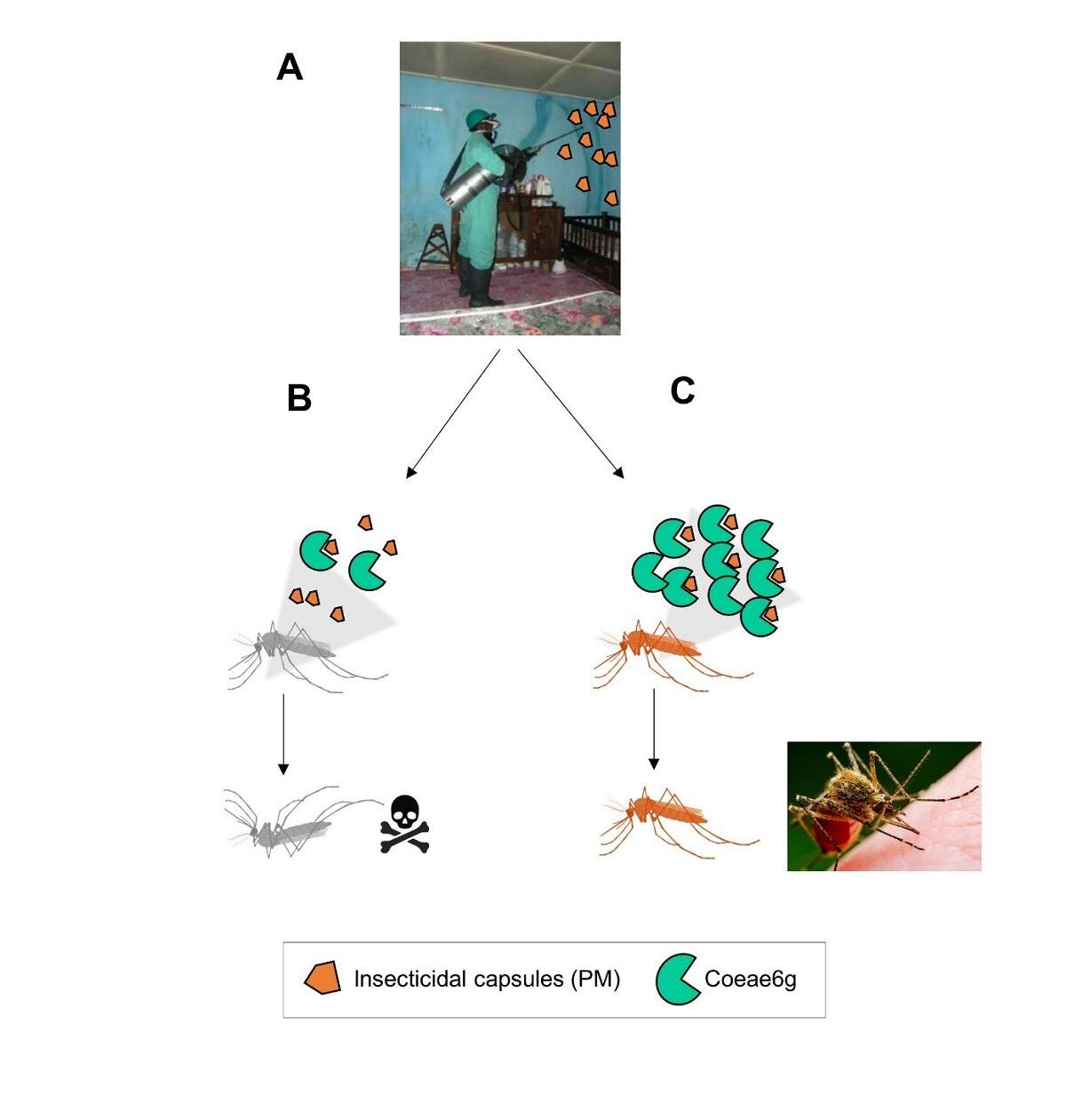 Το Actellic300S είναι ένα νέας γενιάς, πολλά υποσχόμενο εντομοκτόνο σκεύασμα, που εισήχθη πρόσφατα στα προγράμματα ελέγχου της ελονοσίας στην Αφρική. Στη μελέτη του ΙΤΕ και των συνεργατών του, η οποία δημοσιεύτηκε πρόσφατα στο επιστημονικό περιοδικό Nature Communications (https://doi.org/10.1038/s41467-025-65827-4), αναπτύχθηκε μια νέα μέθοδος προγνωστικής χημειο-πρωτεωμικής, η οποία μπορούσε να εντοπίσει πρωτεΐνες- ένζυμα που αλληλεπιδρούν με τα εντομοκτόνα μόρια. Η εφαρμογή της μεθόδου οδήγησε στην ταυτοποίηση της πρωτεΐνης καρβοξυλεστεράσης (Coeae6g) η οποία μπορεί να προσδένει και να κατακρατά τα δραστικά μόρια του καινοτόμου σκευάσματος Actellic300S. Με προσεγγίσεις γενετικής τροποποίησης και βιοχημικού χαρακτηρισμού, αποδείχτηκε ότι η Coeae6g δρα σαν «σπόγγος», δεσμεύοντας το εντομοκτόνο και εμποδίζοντάς το να φτάσει τον τελικό μοριακό του στόχο στο νευρικό σύστημα του κουνουπιού, καθιστώντας το ανθεκτικό. Η πρωτεΐνη βρέθηκε επίσης να δρα με αντίστοιχο τρόπο και σε άλλα εντομοκτόνα μόρια οδηγώντας σε πολλαπλή ανθεκτικότητα.