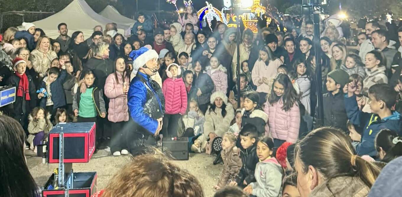 Από τις 17:00, ο χώρος του Δημαρχείου μεταμορφώθηκε σε ένα φωτεινό, χαρούμενο σκηνικό, γεμάτο μουσική, χρώματα και παιδικά χαμόγελα. Τα παιδιά είχαν την ευκαιρία να απολαύσουν face painting, να θαυμάσουν τις εντυπωσιακές εκπλήξεις του μάγου Rocco και να δημιουργήσουν πολύχρωμες φιγούρες με μπαλόνια. Η ατμόσφαιρα γέμισε με τη μυρωδιά από φρεσκοψημένους λουκουμάδες της σχολής Kappa Studies, ενώ η ζεστή σοκολάτα από το Caffe Gioia πρόσφερε γλυκές στιγμές σε όλους τους επισκέπτες.