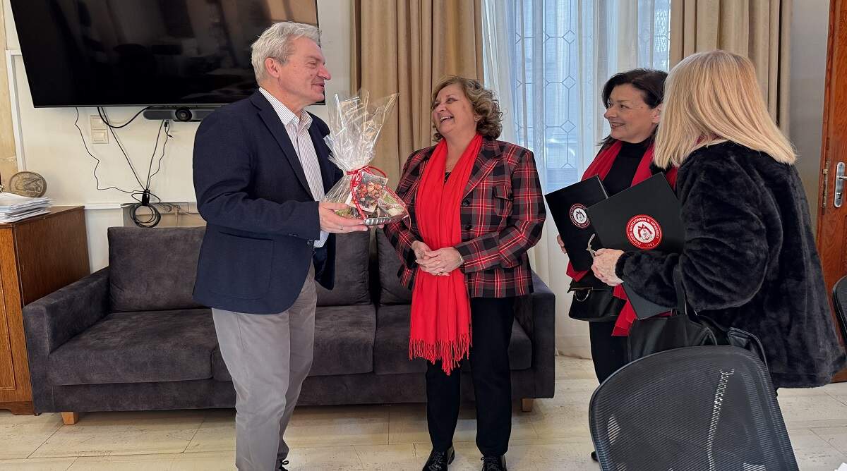 Ο Αλέξης Καλοκαιρινός αντάλλαξε ευχές για υγεία και ευημερία με την Πρόεδρο του Συλλόγου Χριστίνα Χατζηαδάμ και με όλα τα μέλη της Χορωδίας και τους ευχήθηκε να είναι πάντα δραστήριοι και να συνεχίσουν να δίνουν ζωή στην πόλη όπως το κάνουν για περισσότερα από 40 χρόνια. Κατά τη διάρκεια της συνάντησης η οποία έγινε σε ζεστή εορταστική ατμόσφαιρα, ο Σύλλογος Αλατσατιανών πρόσφερε ως δώρο στον Δήμαρχο Ηρακλείου χειροποίητα χριστουγεννιάτικα γλυκίσματα φτιαγμένα από τα μέλη του.