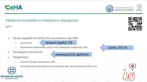 Η Περιφέρεια Κρήτης σε συνεργασία με το Εργαστήριο Καρδιοπνευμονικής Αναζωογόνησης της Ιατρικής Σχολής του Πανεπιστημίου Κρήτης και το Κέντρο Εφαρμογών και Υπηρεσιών Ηλεκτρονικής Υγείας (CeHA), του ΙΤΕ–ΙΠ παρουσιάζει τα «βήματα» για την ορθή εγγραφή και διαχείριση απινιδωτών (AED) από ιδιωτικούς και δημόσιους φορείς στην ψηφιακή εφαρμογή ΔΙΧΤΥ (https://apinidotes.crete.gov.gr/OrgRegistrationForm ).Το ΔΙΧΤΥ, ως ψηφιακή εφαρμογή, αποτελεί ένα καινοτόμο εργαλείο που συμβάλλει καθοριστικά στην…