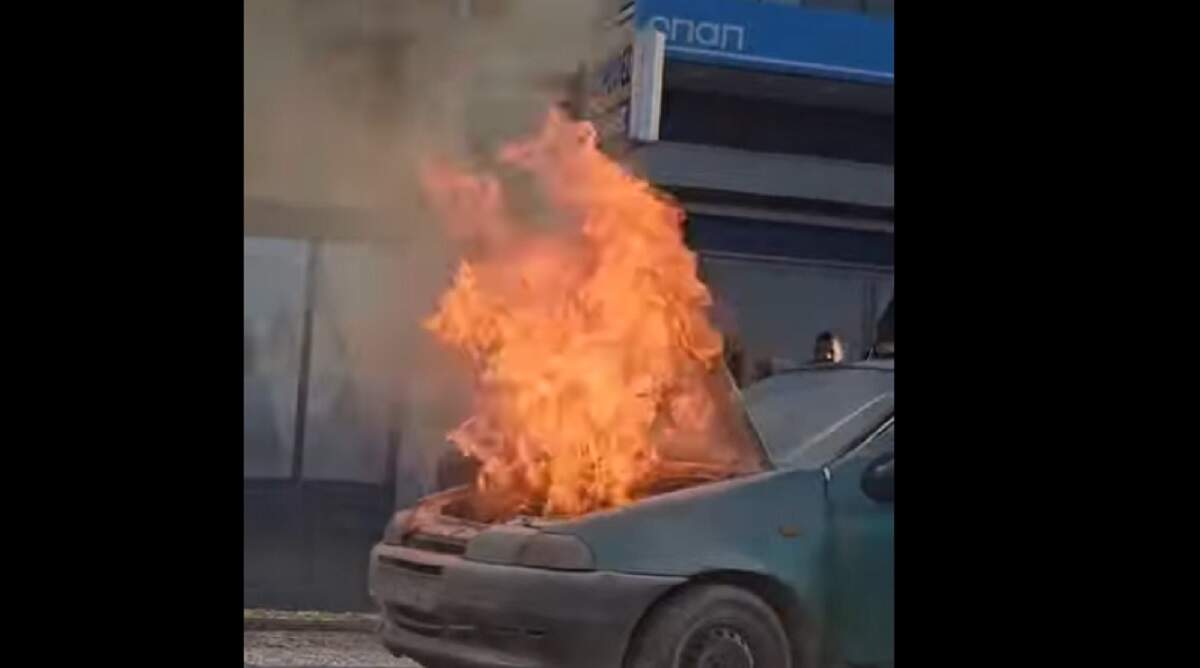 Δείτε βίντεο από τη στιγμή που το αυτοκίνητο παίρνει φωτιά.