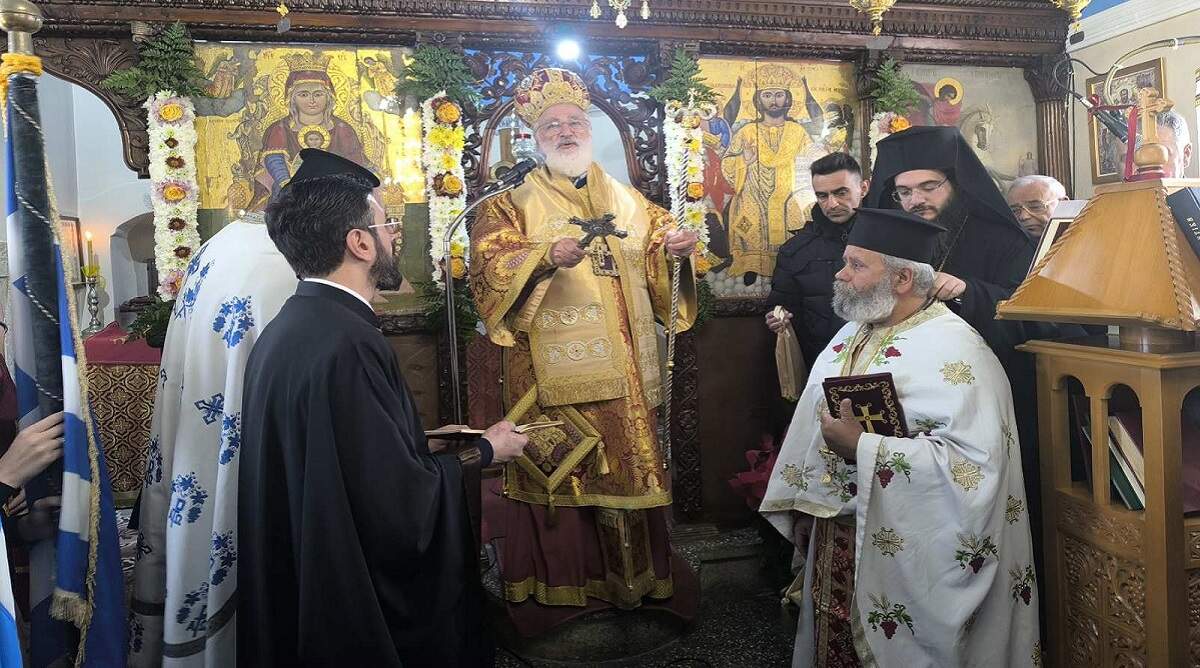 Το πρωί του Σαββάτου 17 Ιανουαρίου, τελέστηκε πανηγυρική Θεία Λειτουργία, ιερουργούντος του Σεβασμιωτάτου Μητροπολίτη Αρκαλοχωρίου, Καστελλίου και Βιάννου κ.κ. Ανδρέα, πλαισιωμένου από τον Προϊστάμενο της Ενορίας Αρχιμανδρίτη Ιερόθεο Χιώτη και κληρικούς της ευρύτερης περιοχής. Παρόντες ήταν μεταξύ άλλων, ο Δήμαρχος Μινώα Πεδιάδας Βασίλης Κεγκέρογλου, ο Αντιπεριφερειάρχης Νίκος Συριγωνάκης, ο Περιφερειακός Σύμβουλος Γιώργος Παπαδάκης, η Πρόεδρος της Δημοτικής Κοινότητας Καστελλίου Μαρία Σκουλούδη, Αντιδήμαρχοι, Δημοτικοί Σύμβουλοι και εκπρόσωποι της Δημοτικής Αρχής, εκπρόσωποι θεσμικών, εκπαιδευτικών, πολιτιστικών και άλλων φορέων του τόπου, εκπρόσωποι της 133 ΣΜ, της Αστυνομίας, της Πυροσβεστικής, οι σημαιοφόροι και παραστάτες των σχολείων του Καστελλίου και του 7ου Συστήματος Αεροπροσκόπων Καστελλίου κ.α.