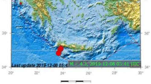 Τρεις νέες σεισμικές δονήσεις μέσα σε 20 λεπτά, από τις 5:41 μέχρι τις 6:01 το πρωί της Κυριακής, κατέγραψε στην περιοχή της Κρήτης το Ευρωμεσογειακό Σεισμολογικό Ινστιτούτο. Οι δονήσεις είχαν επίκεντρο την περιοχή των Χανίων. Η πιο ισχυρή καταγράφηκε στις 5:41 το πρωί και ήταν 4,3 Ρίχτερ, με επίκεντρο 44 χιλιόμετρα δυτικά των Χανίων, στην περιοχή της Παλαιόχωρας, και εστιακό…