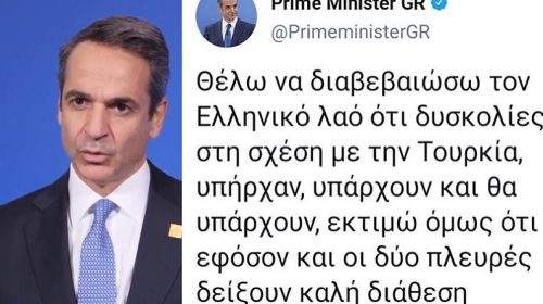 Στην αρχή που είδα την εικόνα από το tweet του πρωθυπουργού, Κυριάκου Μητσοτάκη, σκέφτηκα ότι είναι fake. Δεν μπορεί ένας “άριστος” πρωθυπουργός να λέει κάτι τέτοιο. Ότι διαβεβαιώνει τον ελληνικό λαό πρως με την Τουρκία υπήρχαν, υπάρχουν και θα υπάρχουν δυσκολίες. Η διαβεβαίωση δε γίνεται για κάτι δύσκολο, ή δε λέγεται αυτό διαβεβαίωση. Η διαβεβαίωση είναι για μια προσπάθεια. Παράδειγμα,…