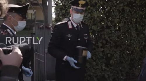Δεν έχει τέλος το δράμα στην Ιταλία που μετρά 20.465 νεκρούς από τον κορονοϊό. Ο συνολικός αριθμός των περιστατικών στη χώρα ανέρχεται σε 159.516. Το τελευταίο εικοσιτετράωρο, έχασαν την ζωή τους 566 ασθενείς και καταγράφηκαν 3.153 νέα κρούσματα. Σε βίντεο που δημοσίευσε το Ruptly από την περιοχή του Μπέργκαμο, δύο άνδρες της ιταλικής αστυνομίας διανέμουν τεφροδόχους ανθρώπων που έχασαν τη ζωή τους…