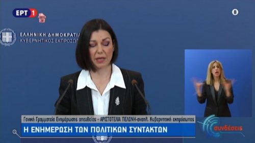 “Δεν ανταποκρίνονται στην πραγματικότητα τα σενάρια που κυκλοφορούν τις τελευταίες ημέρες ότι θα υπάρξει καθολική απαγόρευση της κυκλοφορίας. Επιτείνουν τη σύγχυση. Δεν πρόκειται να κλείσουν οι δρόμοι” τόνισε κατά την ενημέρωση των δημοσιογράφων, η αναπληρώτρια κυβερνητική εκπρόσωπος, Αριστοτελία Πελώνη. Επίσης, η κ. Πελώνη είπε ότι κλείνουν από την Τετάρτη όλα τα εμπορικά καταστήματα, αλλά θα παραμείνουν ανοιχτά τα σούπερ μάρκετ,…