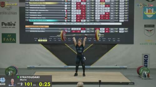 Νέα τρομερή εμφάνιση από την Μαρία Στρατουδάκη που κατέκτησε δύο ασημένια και ένα χάλκινο μετάλλιο στο Ευρωπαϊκό Πρωτάθλημα Νέων-Νεανίδων και U23 της Αλβανίας. Στην κατηγορία των 53 στις Νεάνιδες σήκωσε 82 κιλά στο αρασέ και πήρε το χάλκινο μετάλλιο ενώ συγκλονιστική ήταν στο επολέ ζετέ με 101 κιλά, φτάνοντας στα 183 κιλά στο σύνολο και κατακτώντας δύο ασημένια. Η πρωταθλήτρια…