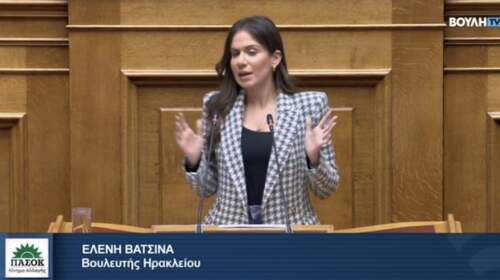 Κριτική στην Οικονομική Πολιτική της κυβέρνησης της ΝΔ άσκησε από το βήμα της Βουλής, η βουλευτής Ηρακλείου ΠΑΣΟΚ, Ελένη Βατσινά Το κλίμα απόγνωσης που είναι διάχυτο στην αγορά αλλά και στα ελληνικά νοικοκυριά καθώς και τα κρίσιμα ζητήματα που αντιμετωπίζουν καθημερινά οι πολίτες και οι μικρομεσαίες επιχειρήσεις έφερε στη Βουλή, η βουλευτής Ηρακλείου ΠΑΣΟΚ και υπεύθυνη Μικρομεσαίας Επιχειρηματικότητας, Ελένη Βατσινά,…